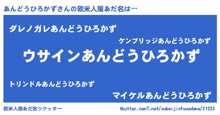 | 男性向けラノベタイトル風あだ名 | 『あんどうひろかずの嫁は女の子じゃないと思った?』 |
