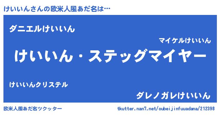 | 男性向けラノベタイトル風あだ名 | 『緋弾のケイイン』『魔弾の王とけいいん』 |