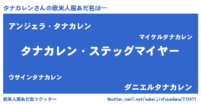 | ヒーロー風カッコイイあだ名 | 『天空の使者タナカレン』『黄金騎士タナ』 |