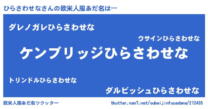| ヘコむあだ名 | 『ひらさわせな(苦笑)』『ひらっぺ』 |
