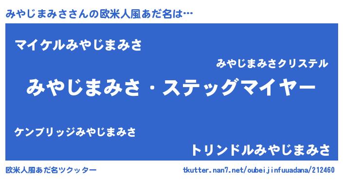 | 恥ずかしいあだ名 | 『プリティーみやじまみさ』『みやっちょ』 |