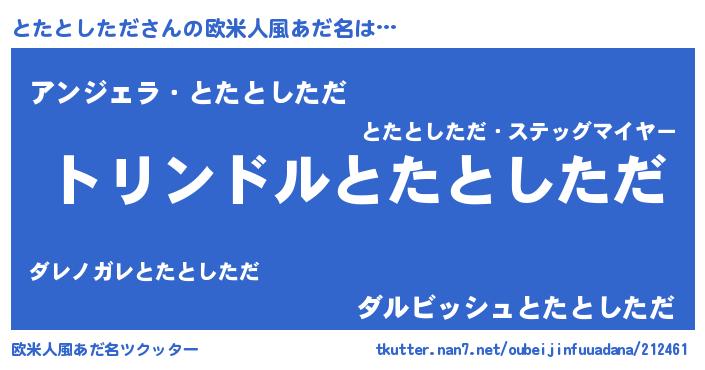 | 男性向けラノベタイトル風あだ名 | 『とたとしただ~年齢イコール彼女いない歴の魔法使い~』 |