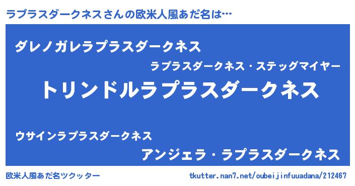 | 男性向けラノベタイトル風あだ名 | 『転生したらラプラスダークネスだった件』 |