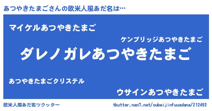 | 意味不明あだ名 | 『住所不定無職あつやきたまご(11歳)』 |