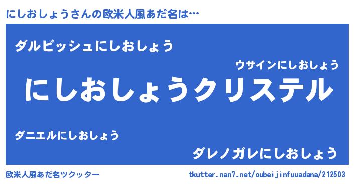 | 意味不明あだ名 | 『にしおしょうフォーエバー』 |