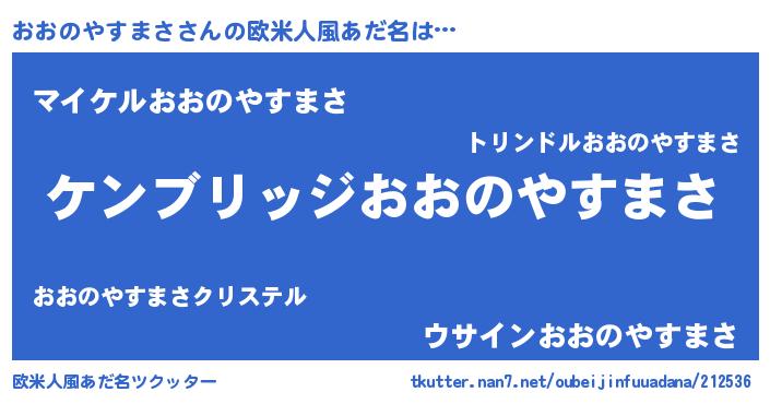 | 女子向けラノベタイトル風あだ名 | 『おおのやすまさなんてお断りですっ。』 |