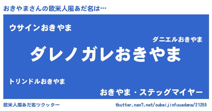 | 男性向けラノベタイトル風あだ名 | 『魔弾の王とおきやま』 |