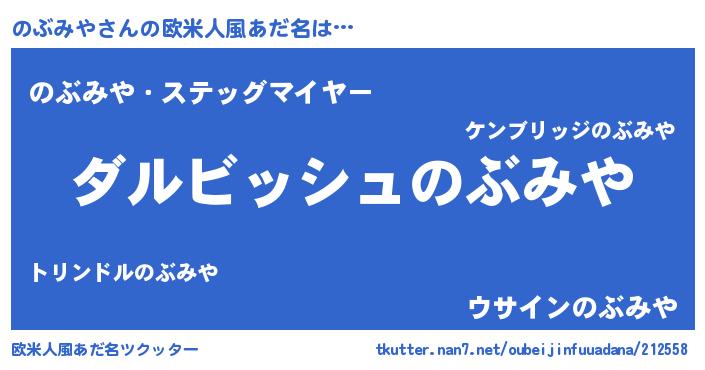 | 男性向けラノベタイトル風あだ名 | 『のぶみやという概念が存在しない退屈な世界 』 |