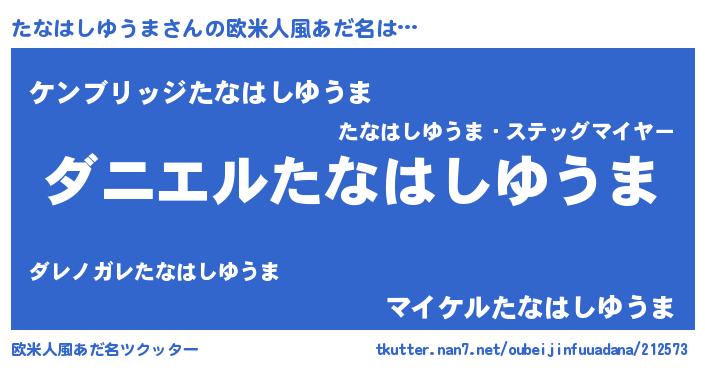 | 男性向けラノベタイトル風あだ名 | 『おまえをオタクにしてやるから、俺をたなはしゆうまにしてくれ! 』 |