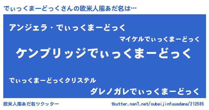| 女子向けラノベタイトル風あだ名 | 『でぃっくまーどっくなんてお断りですっ。』 |