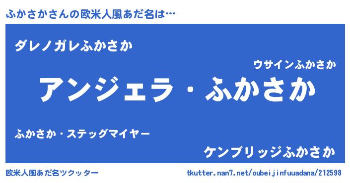 | 男性向けラノベタイトル風あだ名 | 『ふかさかに滅ぼされるだけの簡単なお仕事です』 |