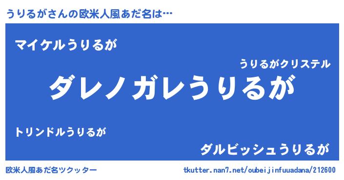 | ヘコむあだ名 | 『うりふぇ~』『うりるが(小並感)』 |