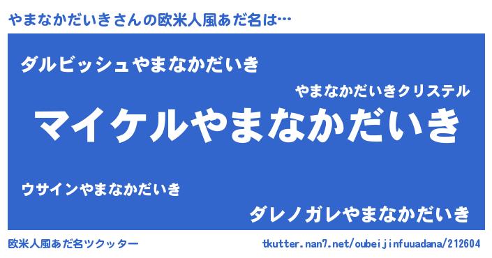 | 男性向けラノベタイトル風あだ名 | 『やまなかだいきの憂鬱』 |