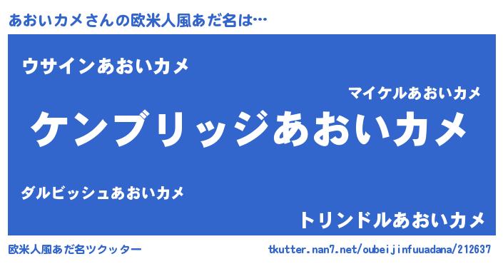 | 男性向けラノベタイトル風あだ名 | 『Re:あおいカメから始める異世界生活』 |