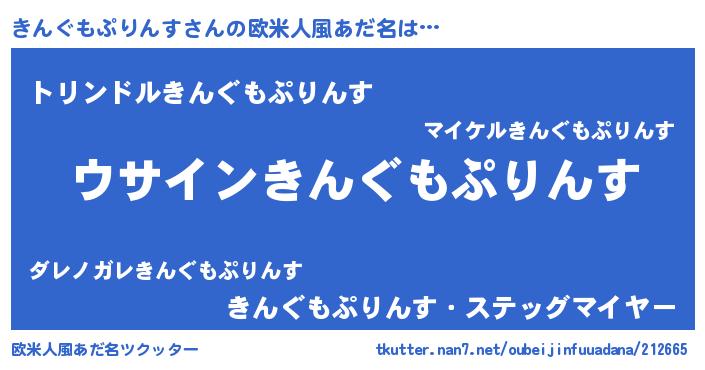 | 男性向けラノベタイトル風あだ名 | 『きんぐもぷりんすの嫁は女の子じゃないと思った?』 |