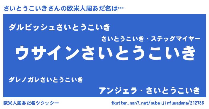 | 男性向けラノベタイトル風あだ名 | 『さいとうこいきの嫁は女の子じゃないと思った?』 |