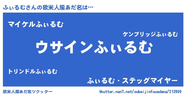 | 男性向けラノベタイトル風あだ名 | 『ふぃるむの嫁は女の子じゃないと思った?』 |