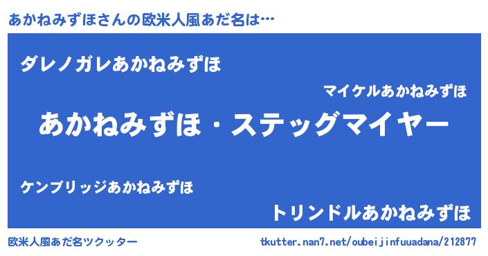 | 意味不明あだ名 | 『住所不定無職あかねみずほ(12歳)』 |
