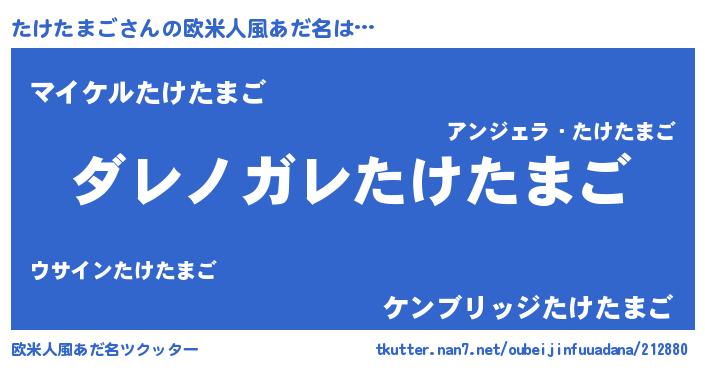 | 意味不明あだ名 | 『住所不定無職たけたまご(2歳)』 |