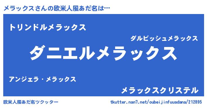 | ヒーロー風カッコイイあだ名 | 『慈愛の使者メラックス』『仮面メラダー』 |