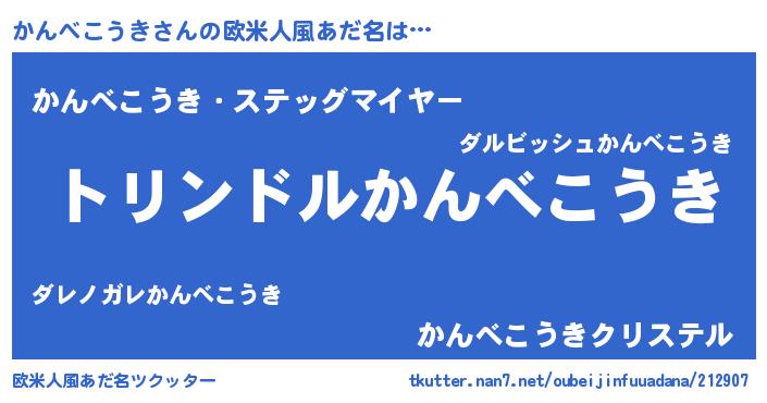 | 女子向けラノベタイトル風あだ名 | 『かんべこうきの玉の輿計画!』 |