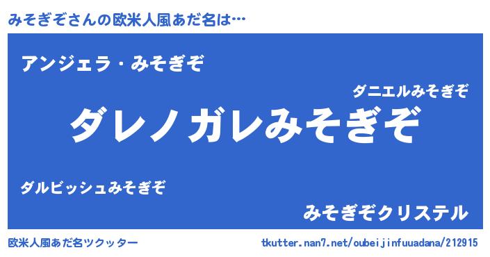 | ヒーロー風カッコイイあだ名 | 『仮面ミソダー』『ウルトラみそぎぞマン』 |