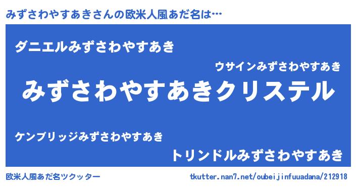 | 意味不明あだ名 | 『みずさわやすあきフォーエバー』 |
