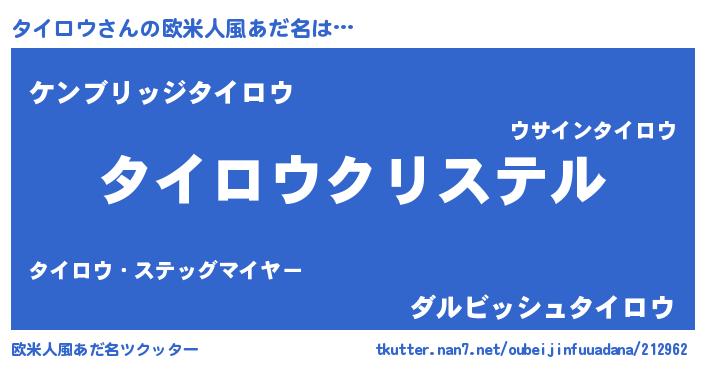 | 女子向けラノベタイトル風あだ名 | 『タイロウの婚約者』『闇のタイロウ』 |