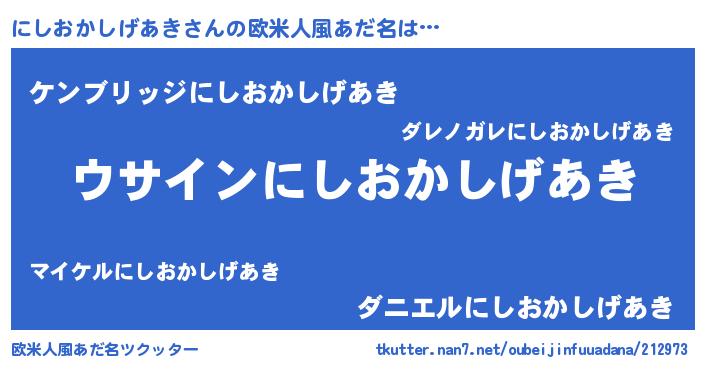 | 男性向けラノベタイトル風あだ名 | 『ダンジョンににしおかしげあきを求めるのは間違っているだろうか』 |
