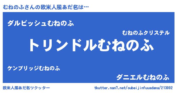 | ヘコむあだ名 | 『むねのふ(笑)』『つくし』『むねを』 |