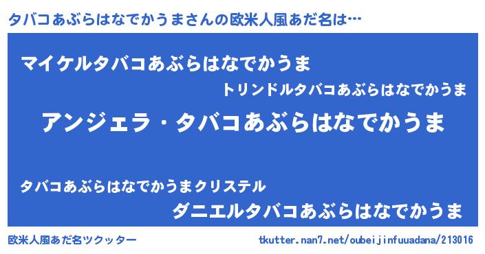 | 伝説のあだ名 | 『伝説のスナイパータバコあぶらはなでかうま』 |
