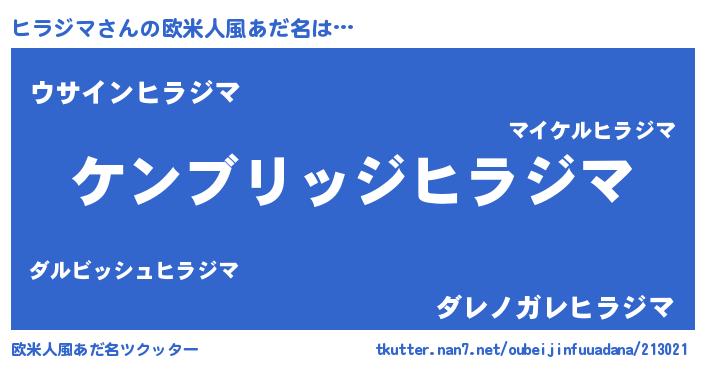 | 男性向けラノベタイトル風あだ名 | 『Re:ヒラジマから始める異世界生活』 |