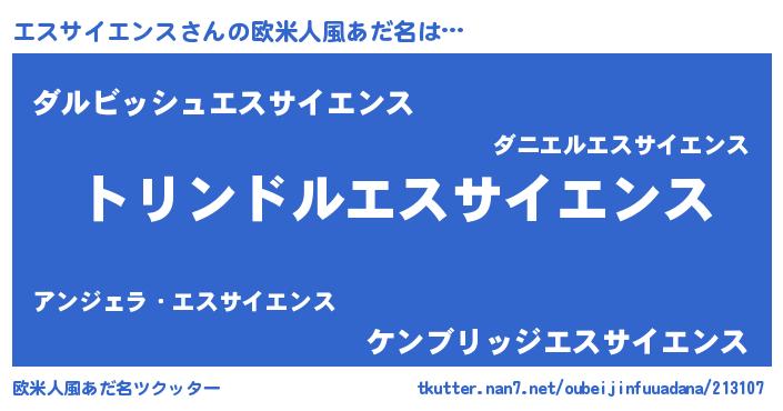 | 男性向けラノベタイトル風あだ名 | 『エスサイエンス~年齢イコール彼女いない歴の魔法使い~』 |