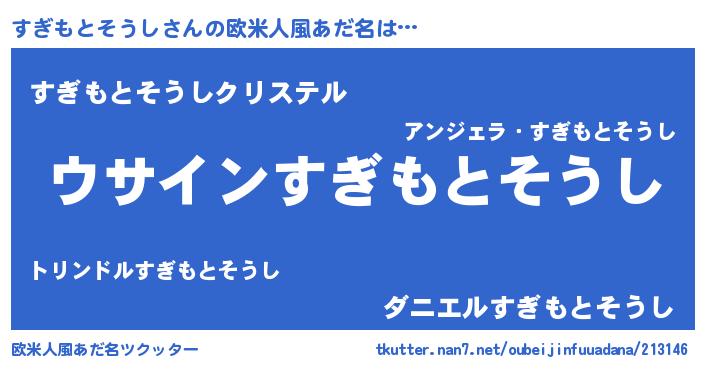 | 男性向けラノベタイトル風あだ名 | 『すぎもとそうしの嫁は女の子じゃないと思った?』 |