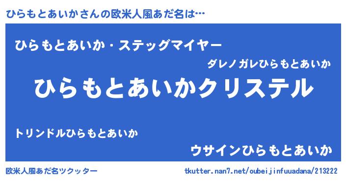 | 男性向けラノベタイトル風あだ名 | 『やはりひらもとあいかの青春ラブコメはまちがっている 』 |