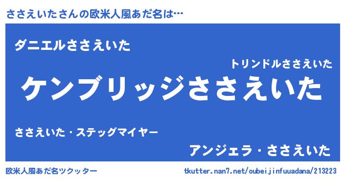 | 意味不明あだ名 | 『自称ささえいた』『永久保存ささえいた』 |