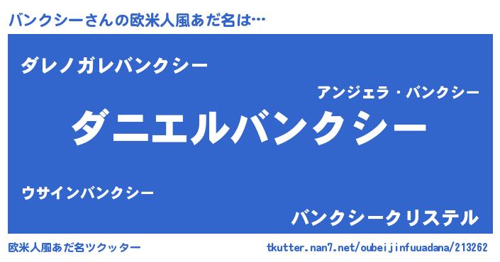 | ヒーロー風カッコイイあだ名 | 『慈愛の使者バンクシー』『仮面バンダー』 |