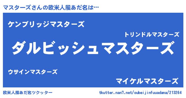 | 胡散臭い通販商品みたいなあだ名 | 『来世でも幸せになれる健康食品…その名も「マスターズ」』 |