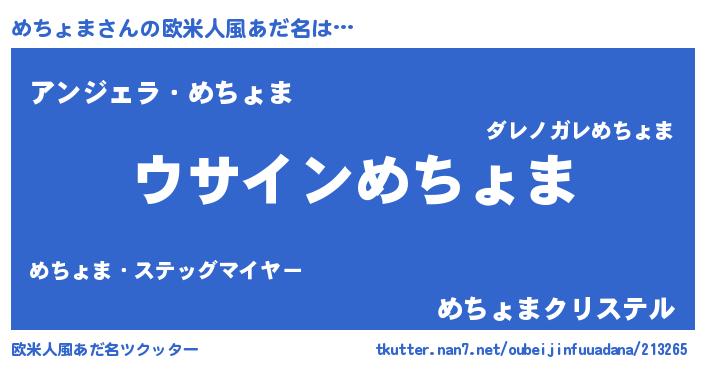 | 男性向けラノベタイトル風あだ名 | 『めちょまの嫁は女の子じゃないと思った?』 |