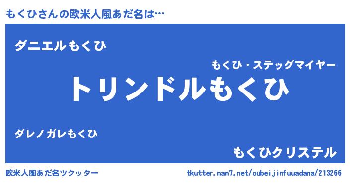 | 男性向けラノベタイトル風あだ名 | 『モクヒスレイヤー』『緋弾のモクヒ』 |
