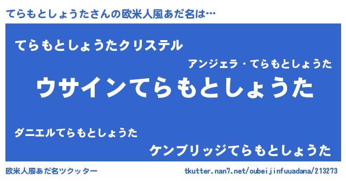 | 男性向けラノベタイトル風あだ名 | 『てらもとしょうたの嫁は女の子じゃないと思った?』 |