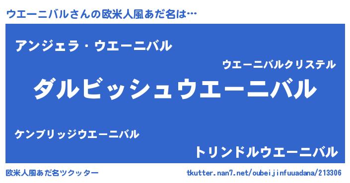 | 男性向けラノベタイトル風あだ名 | 『ウエーニバルという概念が存在しない退屈な世界 』 |