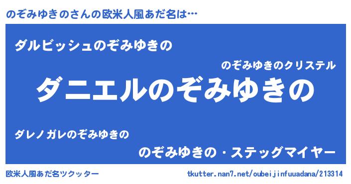 | ヘコむあだ名 | 『のぞみゆきの(笑)』『つくし』 |