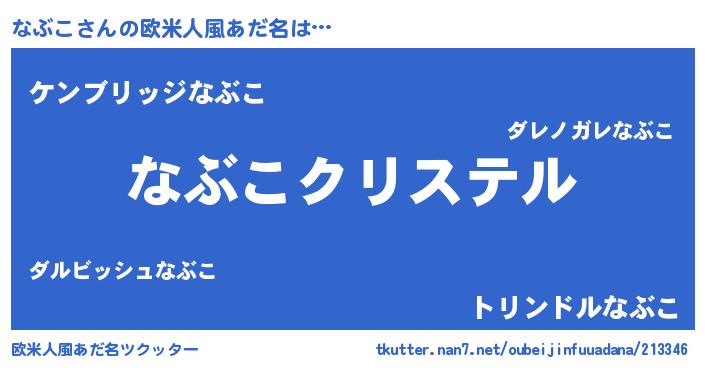 | ヘコむあだ名 | 『豆乳』『なぶこ(笑)』『なぶにゅー』 |