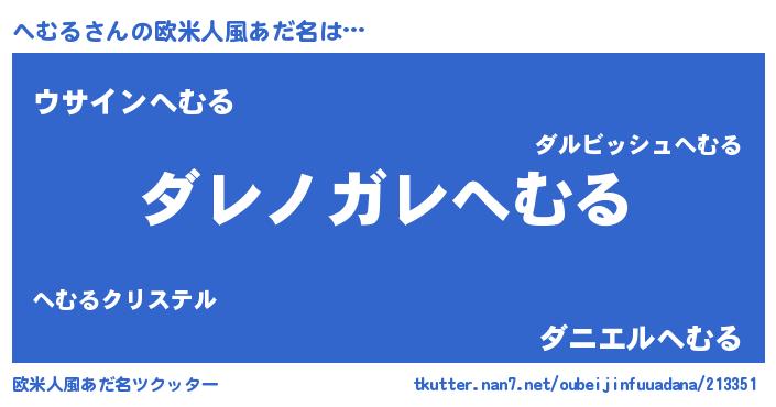 | 意味不明あだ名 | 『住所不定無職へむる(4歳)』 |
