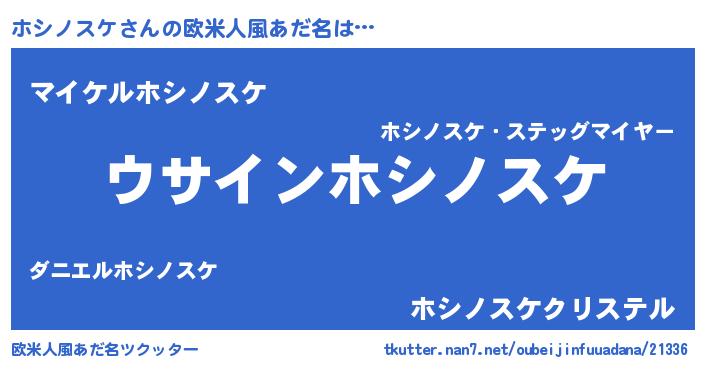 | 男性向けラノベタイトル風あだ名 | 『ホシノスケの嫁は女の子じゃないと思った?』 |