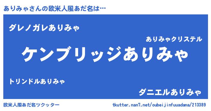 | 女子向けラノベタイトル風あだ名 | 『ありみゃアンティーク』 |