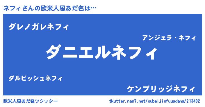 | ヘコむあだ名 | 『ネフィ(苦笑)』『牛乳』『ネフっ子』 |