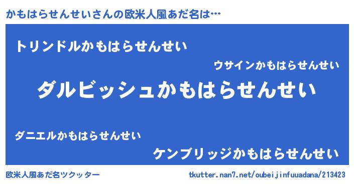 | 胡散臭い通販商品みたいなあだ名 | 『来世でも幸せになれる健康食品…その名も「かもはらせんせい」』 |