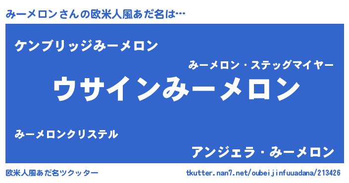 | 女子向けラノベタイトル風あだ名 | 『みーメロンの卵を拾いまして』 |